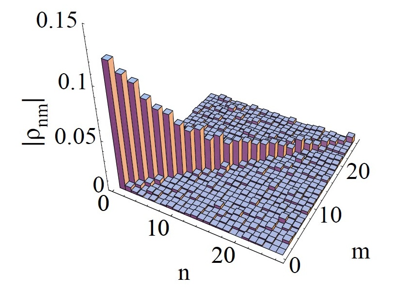 The diagonal elements of its density matrix show the typical exponential decay of the