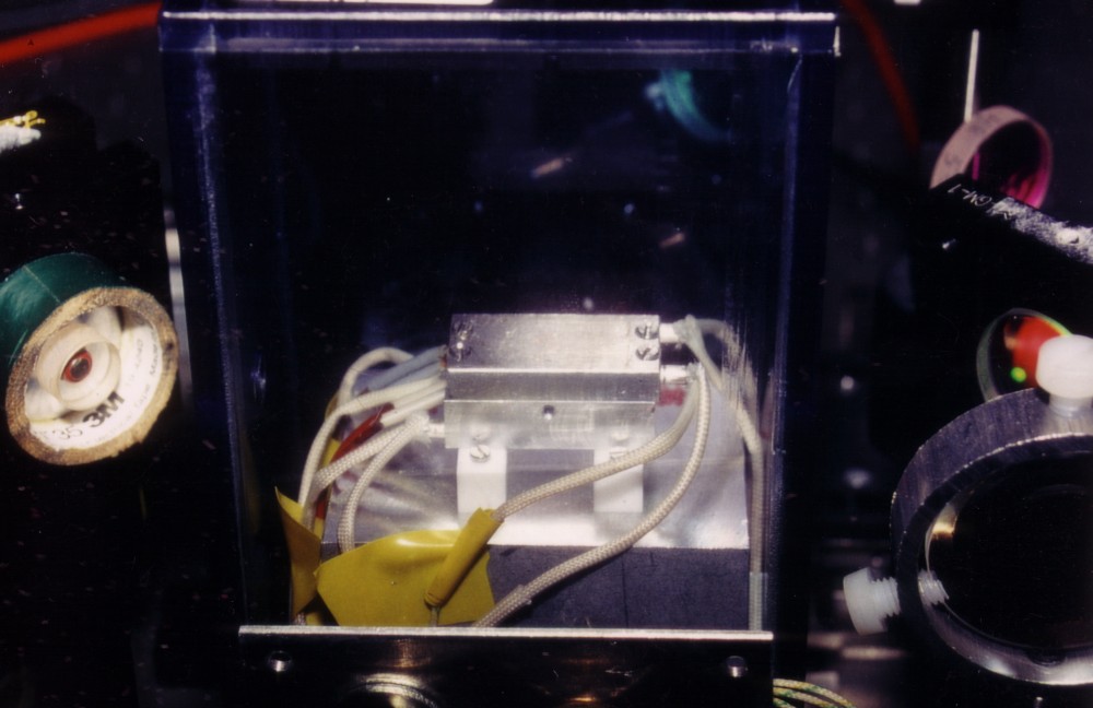 Detail of the actual setup in the lab: The oven with the heated monolithic OPA-crystal