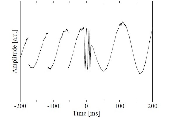 the flyback of the piezo, scanning the light's relative phase.